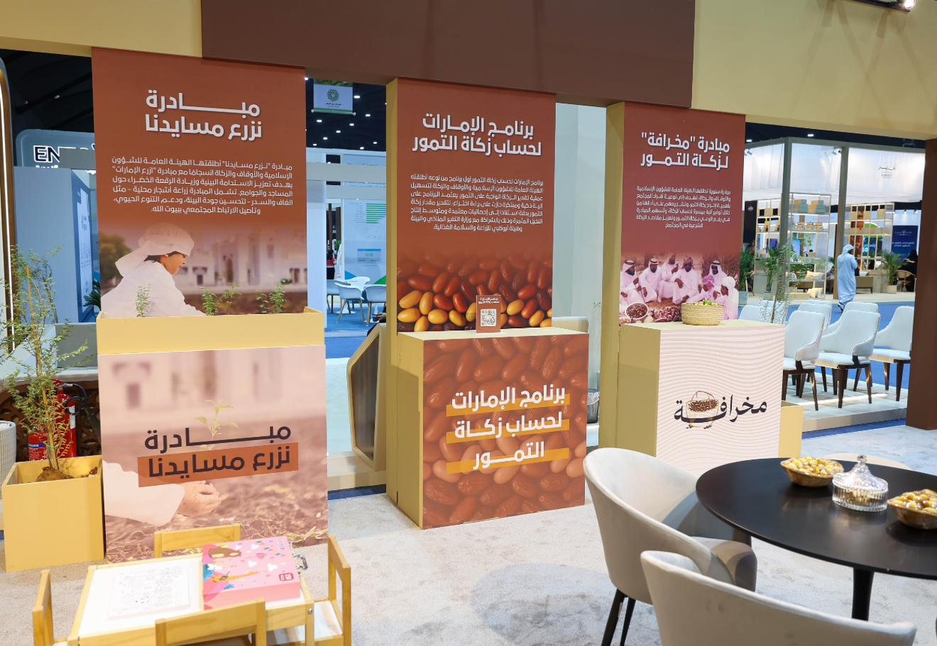 وتتضمن فعاليات الهيئة أنشطةً متنوعةً منها ركنٌ خاصٌ بالأطفال يضم رسوماتٍ متعلقةً ببيئة وأنواع النخيل والتمور، وقصصٌ حول أشجار النخيل وحِكم الآباء والأجداد، وكذلك أنشطةٌ وورشٌ تعليميةٌ ومسابقاتٌ مباشرة، وصورٌ تذكاريةٌ فورية، وعرض مقاطع خاصةٍ لمشروعٍ من مبادرة الهيئة (نزرع مساجدنا، مشاريع الوقف والزكاة) ومنجزاتها، بالإضافة للتعريف بمبادرة مخرافة لزكاة التمور وبرنامج الإمارات لحساب زكاة التمور، ومبادرة وقف نزرع مسايدنا، علاوةً على إقامة جلساتٍ قصيرةٍ يوميةٍ لزوار منصة الهيئة والأطفال في المهرجان، وتنظيم ندوةٍ في المسرح الرئيسي للمهرجان تتضمن النخلة في القرآن والسنة، وأثرها في الحفاظ على البيئة، وبيان بركة التمر على صحة الإنسان.