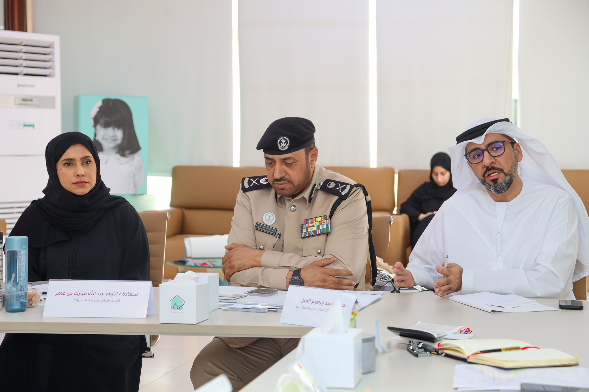 ترأست الاجتماع هنادي اليافعي مدير عام إدارة سلامة الطفل رئيسة اللجنة العليا لمركز “كنف” بحضور أعضاء اللجنة العليا الدكتور محمد عبيد الكعبي رئيس دائرة القضاء في إمارة الشارقة والمستشار أنور الهرمودي رئيس سلطة النيابة العامة واللواء عبدالله مبارك بن عامر القائد العام لشرطة الشارقة وأحمد الميل رئيس دائرة الخدمات الاجتماعية والدكتورة فاطمة الخميري مدير إدارة الطب الشرعي والدكتورة صفية الخاجة مدير عام مستشفى القاسمي للنساء والولادة والأطفال والدكتورة محدثة الهاشمي رئيس هيئة الشارقة للتعليم الخاص والمستشار محمد الشاعر من إدارة التنمية الأسرية وفروعها وخالد الكثيري رئيس قسم خط النجدة في دائرة الخدمات الاجتماعية.