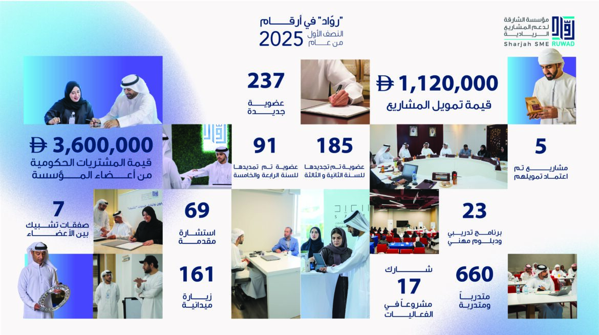 وقال سعادة حمد علي عبدالله المحمود رئيس الدائرة إن النتائج التي حققتها “رُوّاد” في النصف الأول من عام 2025 تؤكد المكانة الراسخة لإمارة الشارقة في تعزيز بيئة ريادة الأعمال وإيمانها العميق بالدور المتنامي والفاعل الذي بات يؤديه الشباب الإماراتي في دعم التنمية الاقتصادية للإمارة وقدرة رواد ورائدات الأعمال على إطلاق مشاريع نوعية وناجحة تشكّل إضافة حقيقية للاقتصاد المحلي وتعزز من حيوية السوق ومرونته وتنوع الأنشطة والأعمال فيه وهو ما تعكسه مؤشرات النمو المستمر في قطاع المشاريع الريادية الصغيرة والمتوسطة والذي يمثل نسبة مهمة من مجمل الرخص الاقتصادية الصادرة في الإمارة.