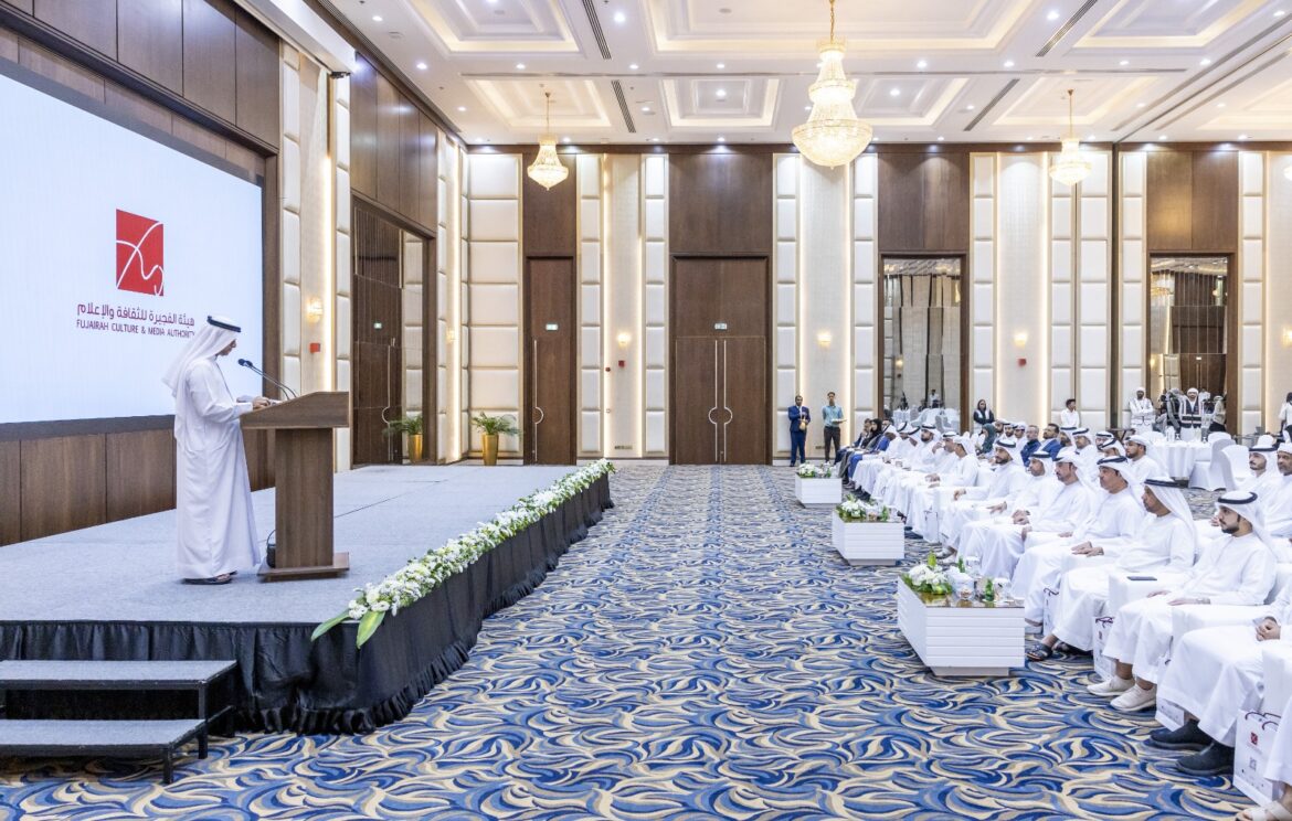 وفي كلمته خلال الحفل، قال سعادة ناصر اليماحي: “ إن صناعة الثقافة والحفاظ على الهوية الأصيلة لأي مجتمع من أصعب المهام، وتسعى الهيئة بتوجيهات صاحب السمو الشيخ حمد بن محمد الشرقي عضو المجلس الأعلى حاكم الفجيرة، ومتابعة سمو الشيخ محمد بن حمد بن محمد الشرقي ولي عهد الفجيرة ، إلى تطبيق خطتها الإستراتيجية للحفاظ على الموروث الثقافي والمعرفي وعلى قيم الإنسان الإماراتي الضاربة بجذورها في أعماق هذه الأرض الطيبة، من خلال وسائل الإعلام المختلفة باستخدام التقنيات الحديثة لتعزيز الهوية الوطنية عبر قنوات التواصل الاجتماعي”.