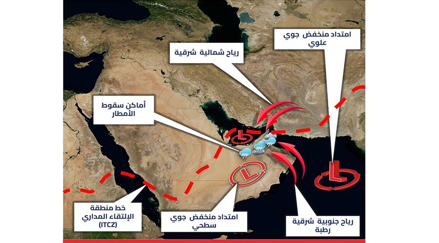 أعلن المركز الوطني للأرصاد الجوية أن الدولة ستتأثر من الأربعاء إلى الجمعة بتمديد الهواء السطحي والهواء العالي ، مما يؤدي إلى تدفق كتلة الهواء الرطب ودرجات حرارة عالية