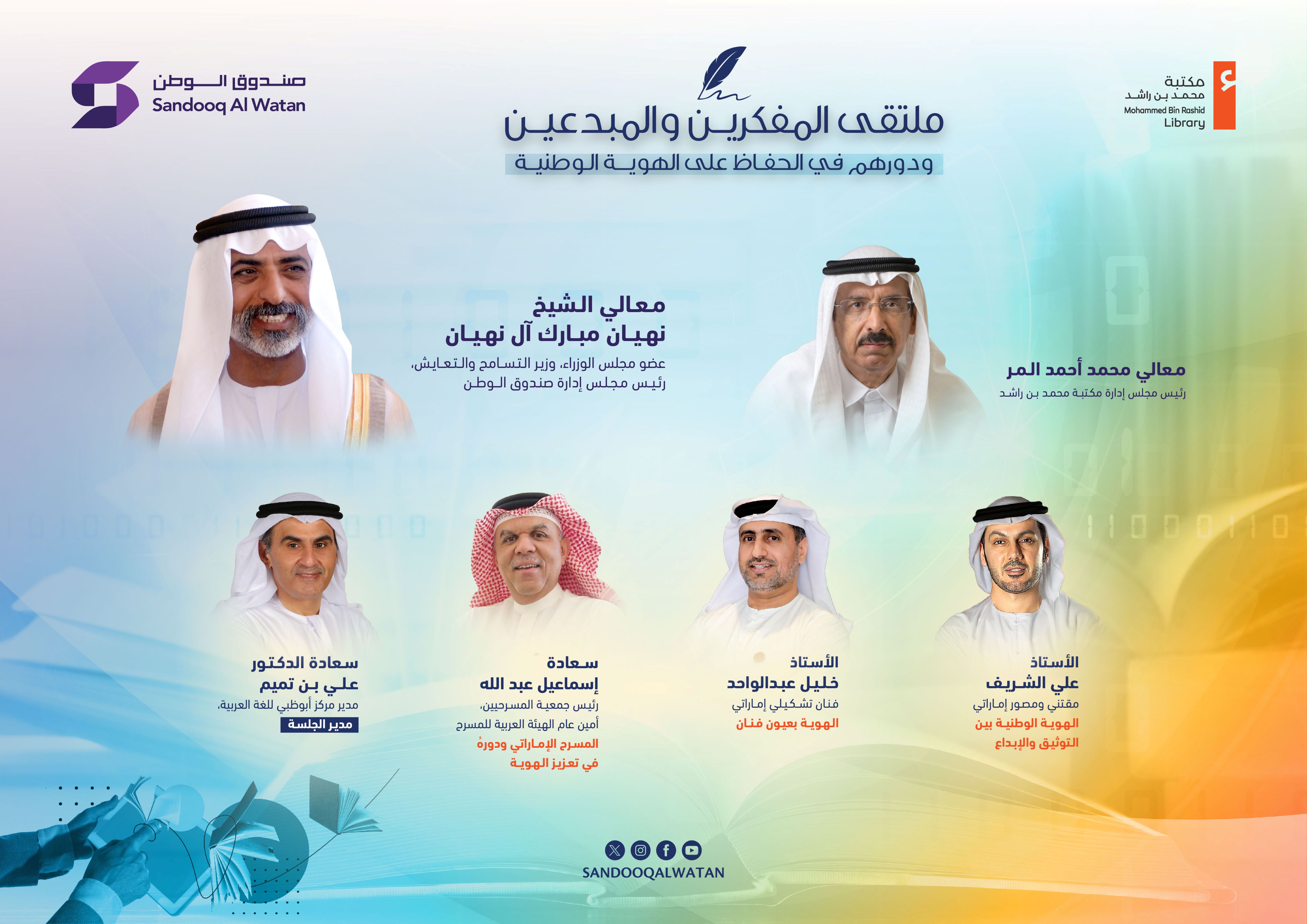 ويمثل الملتقى الذي تحتضنه مكتبة محمد بن راشد بدبي مساحة حوارية وتفاعلية لتحديد الأدوار الجوهرية التي يمكن أن يؤديها المبدعون في دعم وتعزيز الهوية الوطنية، واستعراض آليات تمكين هذه الفئات من خلال برامج ومبادرات الصندوق، وصياغة مشاريع مشتركة معهم خلال المرحلة المقبلة وفق رؤية واضحة تحدد معالم هذا التعاون.