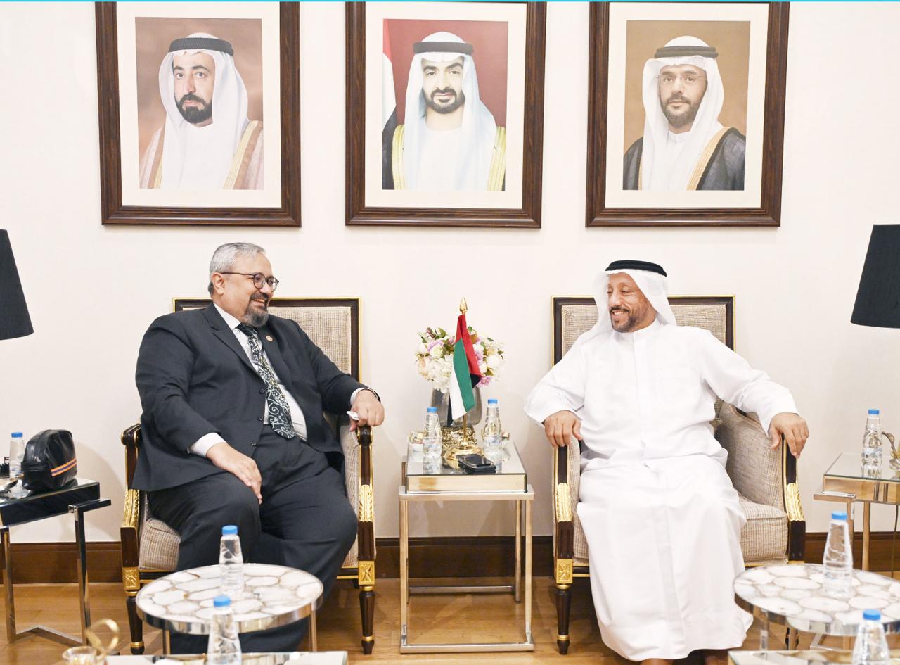 جاء ذلك خلال استقبال سعادة عبد الله سلطان العويس، رئيس مجلس إدارة الغرفة اليوم، لسعادة داتو تنغكو سراج الزمان بن تنغكو محمد عاريفين، سفير ماليزيا لدى الدولة، والوفد المرافق له، في مقر الغرفة، بحضور عدد من المسؤولين من الجانبين.