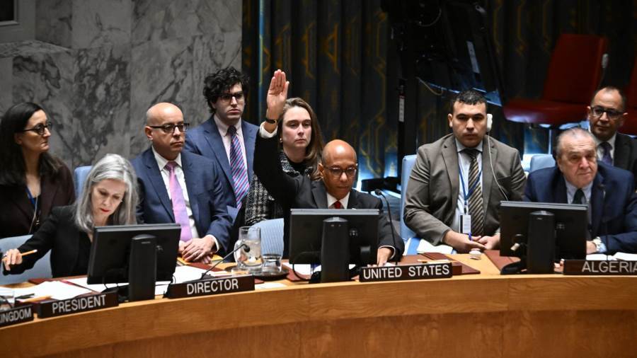 & nbsp ؛ لإسقاط مسودة قرار لمجلس الأمن التابع للأمم المتحدة من شأنه أن يطالب بوقف فورية وغير مشروطة ودائمة في غزة ، ويطالب إسرائيل برفع جميع القيود المفروضة على تقديم المساعدة للقطاع الفلسطيني.