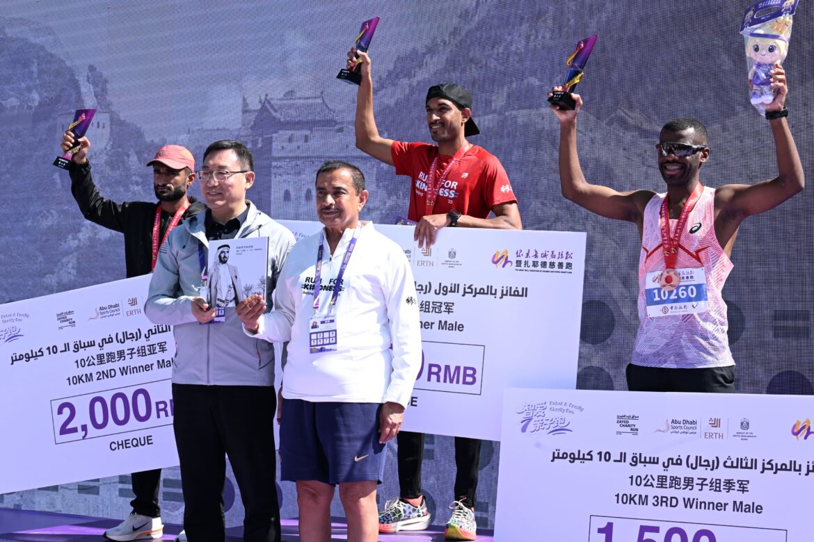 وتصدر العداؤون الإماراتيون المشهد على منصة التتويج في سباق زايد الخيري لمسافة 10 كم، حيث احتل المركز الأول سيف العلوي، وحل ثانيا سهيل البلوشي، بينما توج سعود الزعابي، بالمركز الثالث .