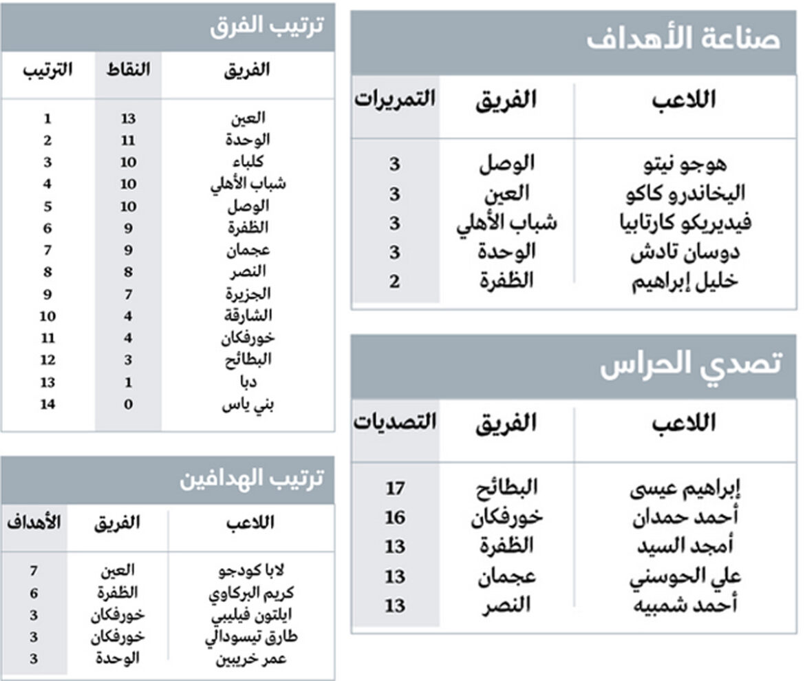 حجز المهاجم الدعفرا ، كريم الباركاوي ، مكانه بسرعة بين البالغين بعد أن وصل إلى هدفه السادس مع “فاريس آل ظهاء” ، بعد أن سجل ازدواجية قاد فيها فريقه للفوز على البنان 3-1 ، ومرتبة الباراكوي في المرتبة الثانية في ترتيب الهدف من قبل المهاجم. سجل باراكوي ستة أهداف من أصل 10 سجل من قبل الظفر ، الذي جمع 9 نقاط بعد 5 جولة في أفضل بدايات.