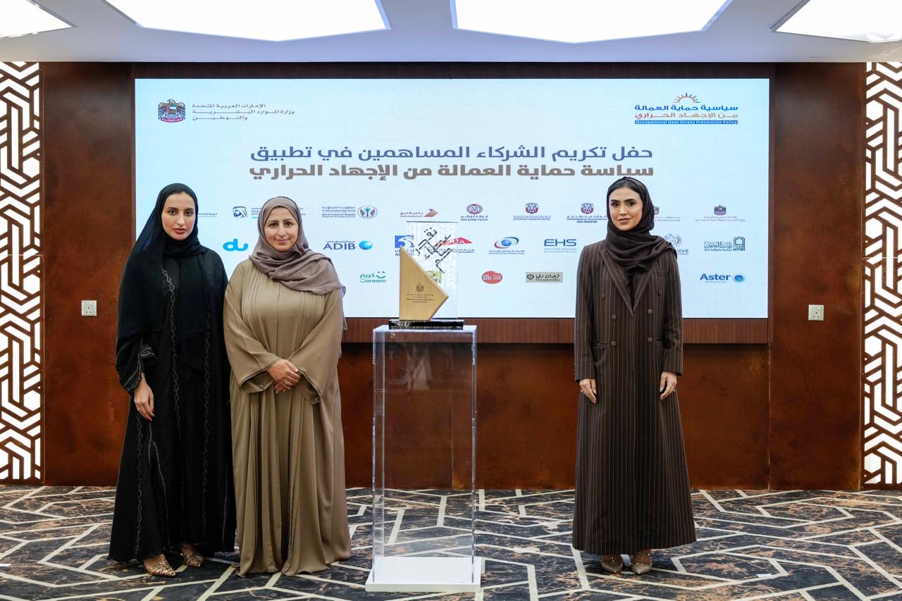 دبي في 30 سبتمبر/ وام / كرمت وزارة الموارد البشرية والتوطين في حفل نظمته في مبناها بدبي، 21 جهة من شركائها في الجهات الحكومية الاتحادية والمحلية والقطاع الخاص لمساهمتهم بفاعلية في حملة “حماية العمالة من الاجهاد الحراري” لهذا العام والتي اختتمت في 15 سبتمبر الحالي، بنسبة التزام بلغت 99% من الشركات.
