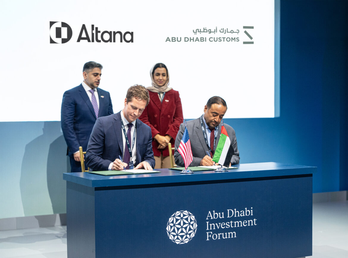 شهد مراسم توقيع المذكرة، معالي أحمد جاسم الزعابي، رئيس دائرة التنمية الاقتصادية – أبوظبي، وسعادة آمنة بن زعل المهيري، القنصل العام لدولة الإمارات في نيويورك، فيما وقعها سعادة راشد لاحج المنصوري، مدير عام جمارك أبوظبي، و إيفان سميث، الرئيس التنفيذي لشركة ألتانا للتكنولوجيا، وذلك ضمن فعاليات منتدى أبوظبي للاستثمار- نيويورك.