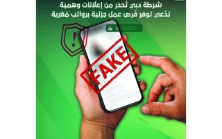 حذر مركز مكافحة الحرام في الإدارة العامة للتحقيقات والتحقيقات الجنائية في شرطة دبي من أفراد مجتمع الإعلانات المزيفة المتزايدة التي تنتشر عبر وسائل التواصل الاجتماعي ، وبعض المنصات الإلكترونية التي تدعي أنها توفر فرص عمل جزئية ورواتب مغرية.