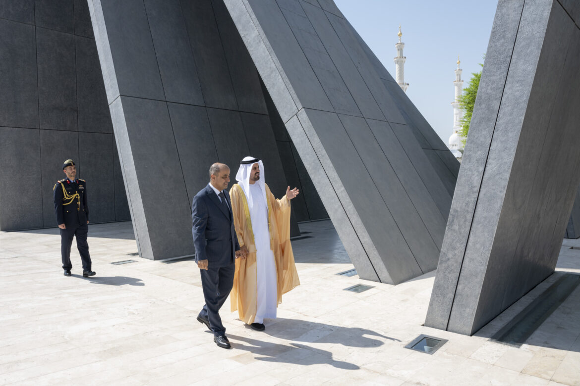 واستعرض معالي رئيس الوزراء اليمني، يرافقه سموّ الشيخ ذياب بن محمد بن زايد آل نهيان، حرس الشرف الذي اصطفَّ لتحيته، ثمَّ وضع إكليلاً من الزهور أمام نصب الشهيد.