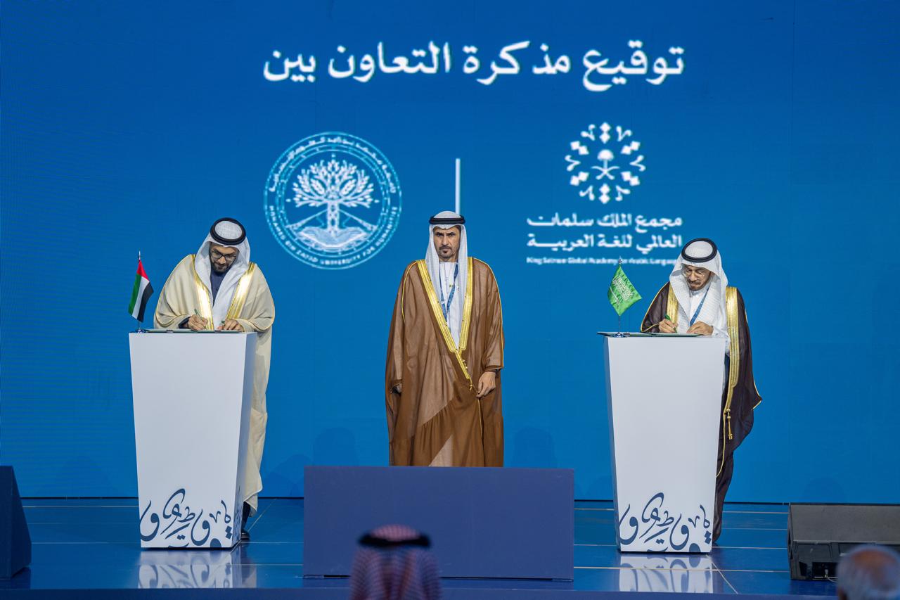 الرياض في 7 أكتوبر/ وام/ أعلنت جامعة محمد بن زايد للعلوم الإنسانية، اليوم، توقيع مذكرة تفاهم مع مجمع الملك سلمان العالمي للغة العربية، وذلك على هامش أعمال المؤتمر السنوي الدولي الرابع للمجمع، المنعقد في مدينة الرياض تحت عنوان: “الصناعة المعجمية في العالم: التجارب، والجهود، والآفاق”.
