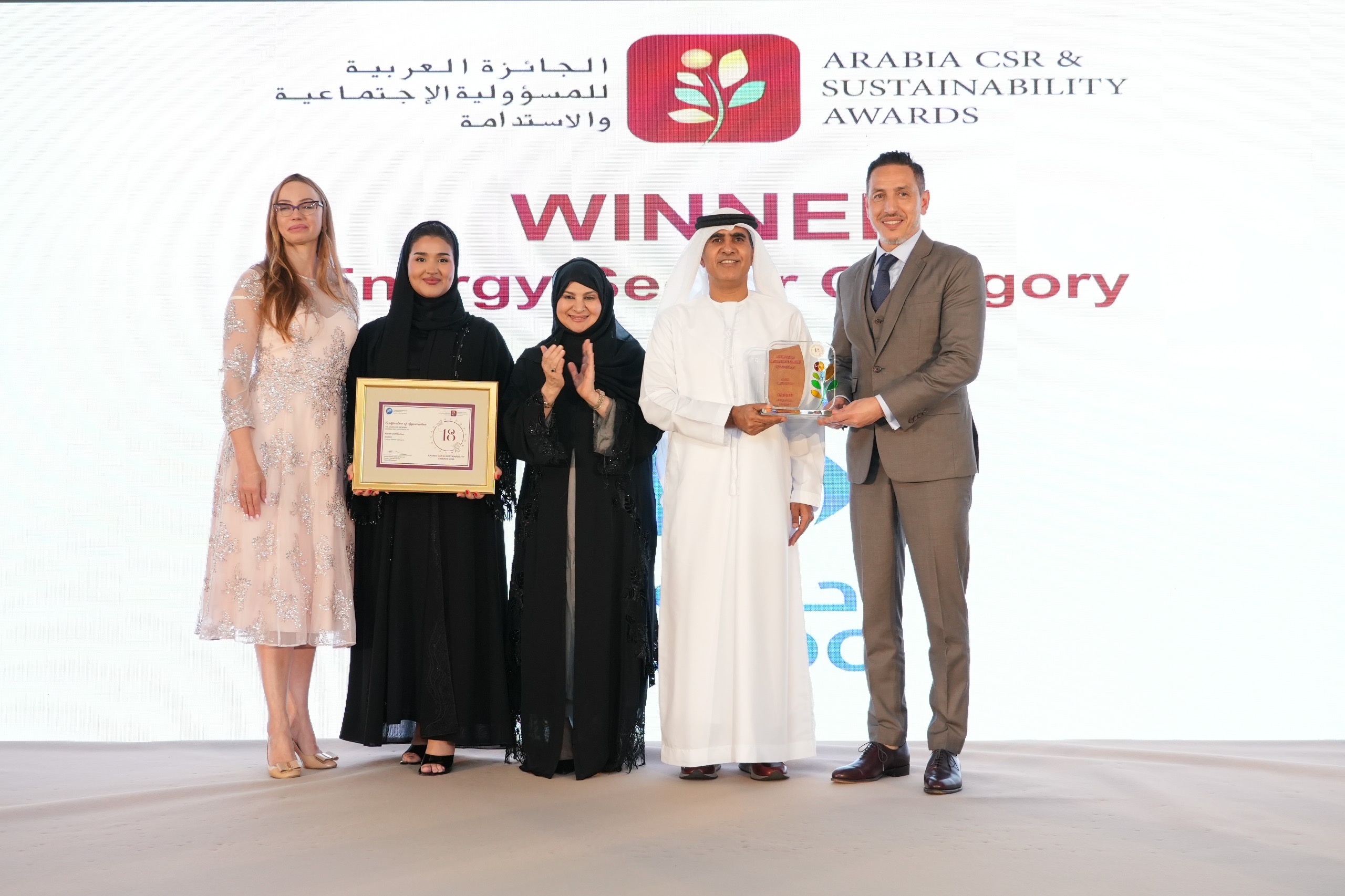 وشهد الحفل تكريم المؤسسات الفائزة في 16 فئة شملت قطاعات الطاقة والتعليم والرعاية الصحية والضيافة والقطاع الحكومي، حيث فازت هيئة كهرباء ومياه دبي في فئة المؤسسات الحكومية الكبيرة، ومؤسسة الفجيرة للموارد الطبيعية في فئة المؤسسات الحكومية المتوسطة، وهيئة الفجيرة للبيئة في فئة المؤسسات الحكومية الصغيرة، فيما فازت أدنوك للتوزيع في فئة قطاع الطاقة، وبنك البحرين للتنمية في فئة الخدمات المالية.