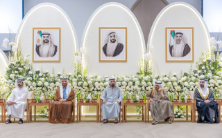 حضر صاحب السمو الشيخ محمد بن راشد آل مكتوم، نائب رئيس الدولة رئيس مجلس الوزراء حاكم دبي، يرافقه سمو الشيخ حمدان بن محمد بن راشد آل مكتوم، ولي عهد دبي، نائب رئيس مجلس الوزراء وزير الدفاع، رئيس المجلس التنفيذي لإمارة دبي، حفل الاستقبال الذي أقامه فيصل عبد العزيز البناي في أبوظبي بمناسبة زفاف نجليه عبد العزيز على كريمة نجيب إبراهيم محمد الزرعوني، وعبدالله على كريمة سمير مير. عبد العزيز الخوري.