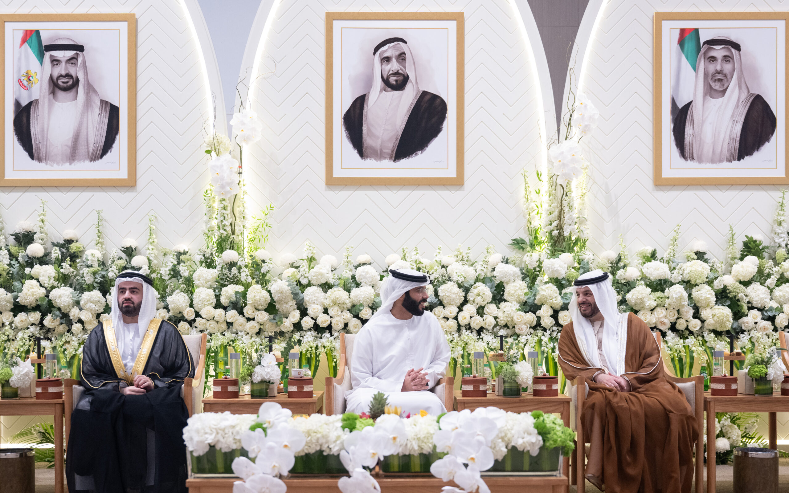 أبوظبي في 26 أكتوبر / وام / حضر الشيخ هزاع بن حمدان بن زايد آل نهيان، حفل الاستقبال الذي أقامه معالي فيصل عبدالعزيز البناي في أبوظبي، بمناسبة زفاف نجليه عبدالعزيز، إلى كريمة نجيب إبراهيم محمد الزرعوني، وعبدالله، إلى كريمة سمير مير عبدالعزيز الخوري.