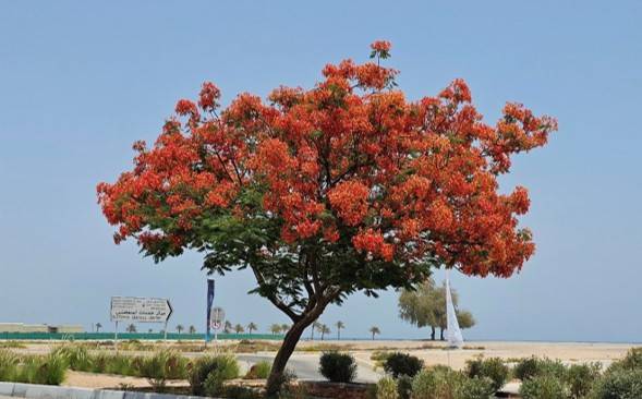 شوارع وحدائق مدينة دلما تتزين بأشجار البونسيانا المزهرة…
