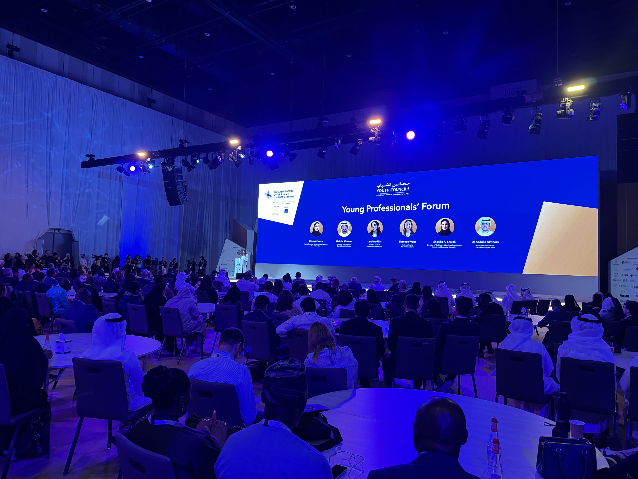 وناقش المشاركون عايشة الهاشمي تنفيذي علاقات دولية غرفة دبي، وشيخة الشيخ مدير إدارة المباني والمرافق في هيئة الطرق والمواصلات بدبي، وعبدالله الشامسي محلل علوم البيانات في سلطة دبي الرقمية، وشانون وونغ محلل أعمال في ويف إنترناشونال، ولينا أنكليس طالبة ماجستير في جامعة ملبورن، خلال المنتدى عدداً من المحاور الرئيسية، شملت التحول الرقمي والذكاء الاصطناعي، والابتكار الحضري، وبناء المدن المرنة والمستدامة، وذلك بجانب نخبة من المهنيين الشباب من مختلف المدن والدول المشاركة في القمة.