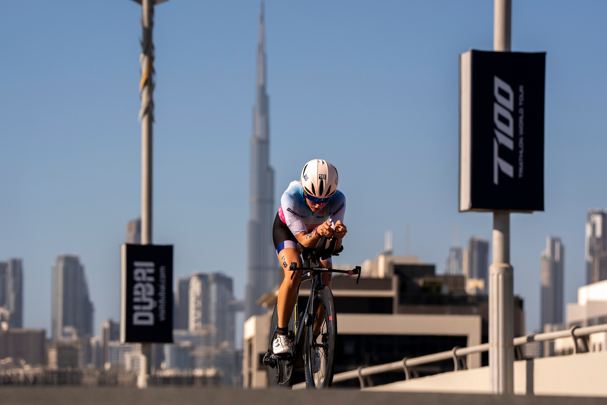 ويقام “ترايثلون دبي T100” ضمن فعاليات تحدي دبي للياقة “30×30“، حيث ينطلق من شاطئ جميرا 3 ويمر بمضمار ميدان وصولاً إلى خط النهاية أمام برج خليفة.