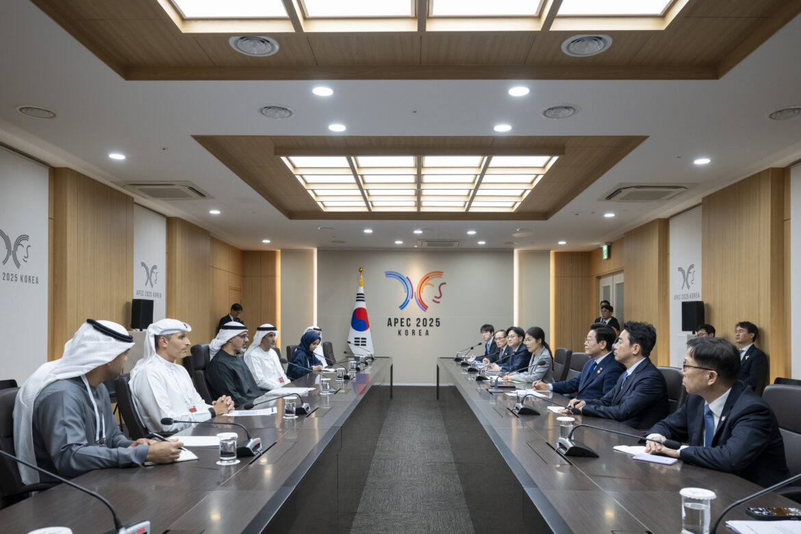 غيونغجو – كوريا في 31 أكتوبر/ وام/ التقى سمو الشيخ خالد بن محمد بن زايد آل نهيان، ولي عهد أبوظبي، فخامة لي جيه ميونغ، رئيس جمهورية كوريا، في مدينة غيونغجو التي تستضيف أعمال منتدى التعاون الاقتصادي لدول آسيا والمحيط الهادئ.