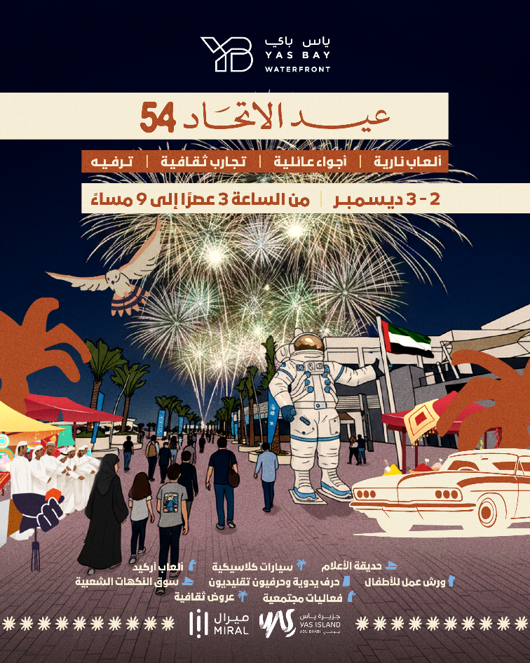 تستعد واجهة خليج ياس البحرية للاحتفال بيوم الاتحاد الـ54، من خلال إقامة فعالية استثنائية على مدار يومين للاحتفال بالذكرى الـ54 لتأسيس دولة الإمارات العربية المتحدة…