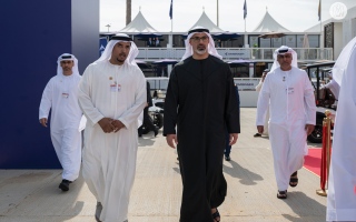 رافق سموه خلال الجولة صاحب السمو الشيخ زايد بن محمد بن زايد آل نهيان والشيخ خليفة بن طحنون بن محمد آل نهيان رئيس ديوان ولي عهد أبوظبي وفيصل عبد العزيز البناي مستشار رئيس الدولة للبحوث الاستراتيجية والتكنولوجيا المتقدمة الأمين العام لمجلس أبحاث التكنولوجيا المتقدمة والفريق الركن عيسى سيف بن عبلان المزروعي رئيس أركان القوات المسلحة ومحمد علي الشرفاء رئيس دائرة البلديات والنقل. سيف سعيد غباش الأمين العام للمجلس التنفيذي لإمارة أبوظبي رئيس مكتب ولي العهد في ديوان ولي عهد أبوظبي، واللواء الركن راشد محمد الشامسي قائد القوات الجوية والدفاع الجوي، واللواء مبارك سعيد جافان الجابري مساعد وزير دولة للتحول الرقمي والتكنولوجيا والذكاء الاصطناعي بوزارة الدفاع المدير التنفيذي للجنة العسكرية المنظمة لمعرض دبي الجوي، إلى جانب عدد من كبار المسؤولين والضباط في وزارة الدفاع. القوات المسلحة الإماراتية.