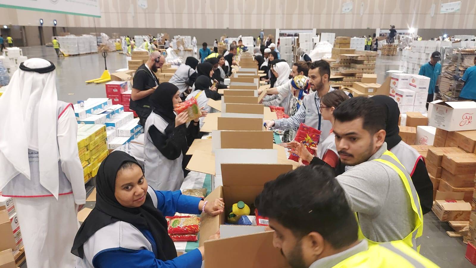توافد آلاف المتطوعين من كافة الأعمار ومن بينهم أطفال إلى مركز دبي للمعارض في إكسبو دبي للمشاركة في مبادرة “سفينة محمد بن راشد الإنسانية” التي تهدف إلى إعداد 10 ملايين وجبة دعماً لأهل غزة.