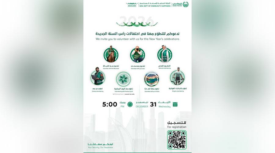 تواصل القيادة العامة لشرطة دبي استقبال طلبات المتطوعين الراغبين في المشاركة في الأنشطة المساندة للعمل الشرطي خلال احتفالات العام الجديد.