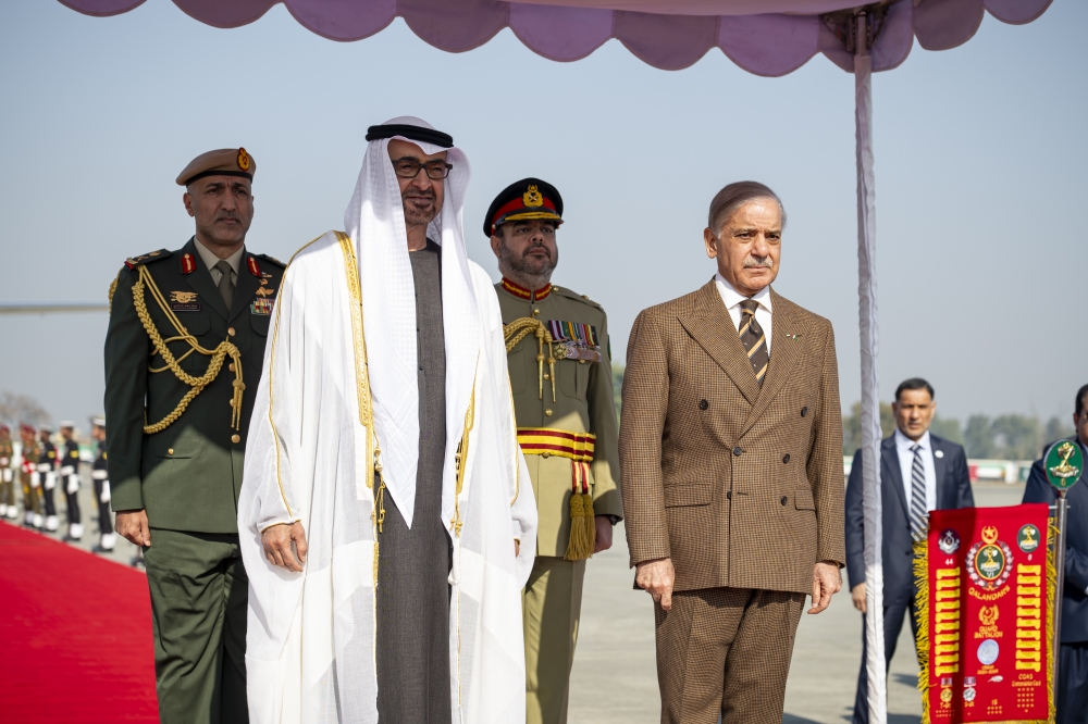 بحث صاحب السمو الشيخ محمد بن زايد آل نهيان، رئيس الدولة، حفظه الله، ومحمد شهباز شريف، رئيس وزراء جمهورية باكستان الإسلامية، اليوم، مختلف مسارات التعاون والعمل المشترك بين البلدين وفرص تطويرهما، خاصة في المجالات الاقتصادية والاستثمارية والتنموية، بما يخدم مصالحهما المشتركة ويدعم رؤيتهما نحو تحقيق التنمية والازدهار. جاء ذلك خلال لقاء سموه مع سمو محمد شهباز شريف في إطار الزيارة الرسمية التي يقوم بها سموه إلى باكستان، حيث رحب رئيس الوزراء الباكستاني بصاحب السمو رئيس الدولة في بداية اللقاء، مؤكداً أن زيارة سموه تمثل دفعة قوية لمسار تطوير العلاقات الإماراتية الباكستانية وتجسد الاهتمام المشترك بمواصلة العلاقات.