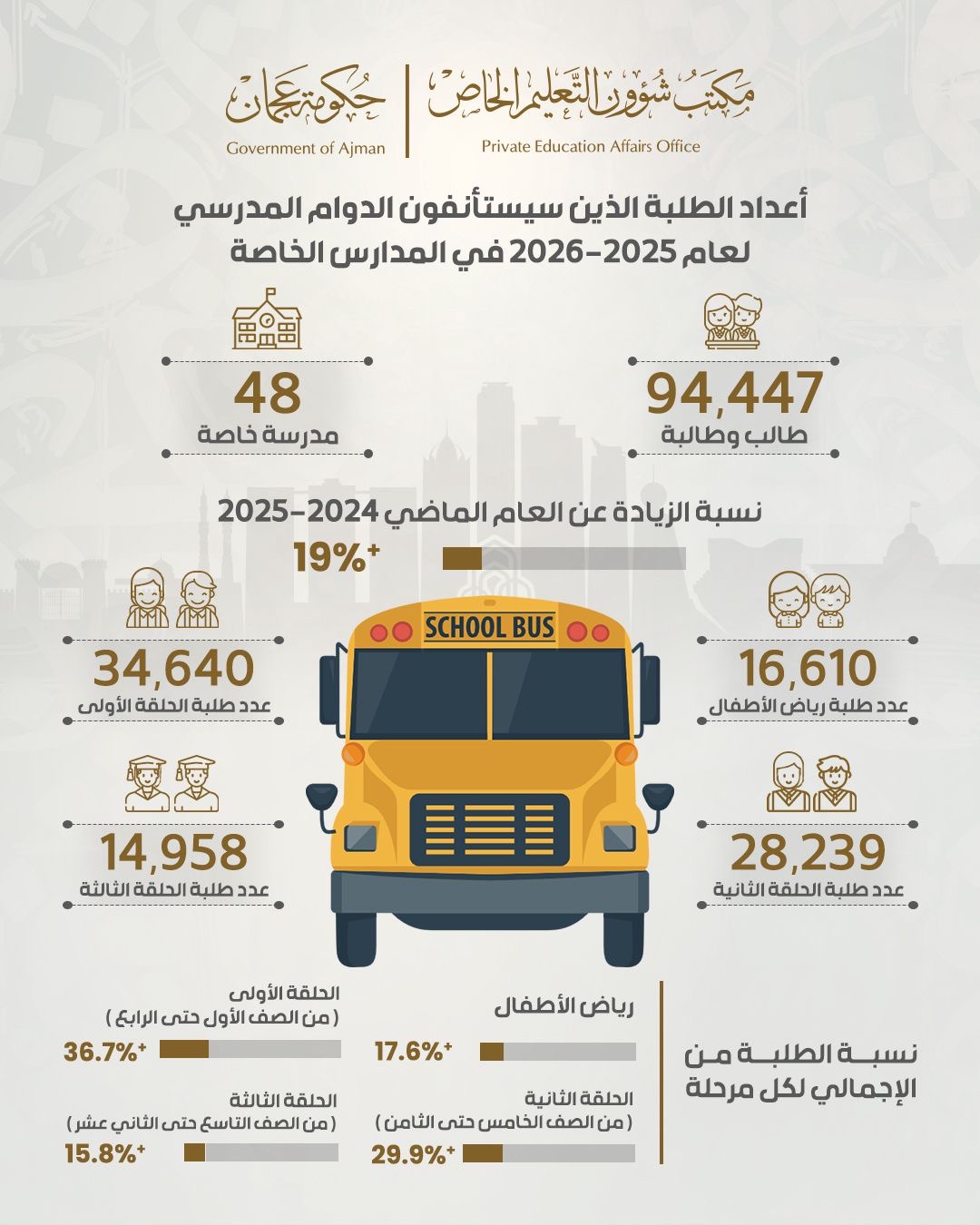 عجمان في 2 يناير / وام / تستأنف المدارس الخاصة في إمارة عجمان دوامها المدرسي يوم الإثنين المقبل بعد انتهاء العطلة الشتوية، ليعود ما يقارب من 95 ألف طالب وطالبة إلى مقاعد الدراسة، .