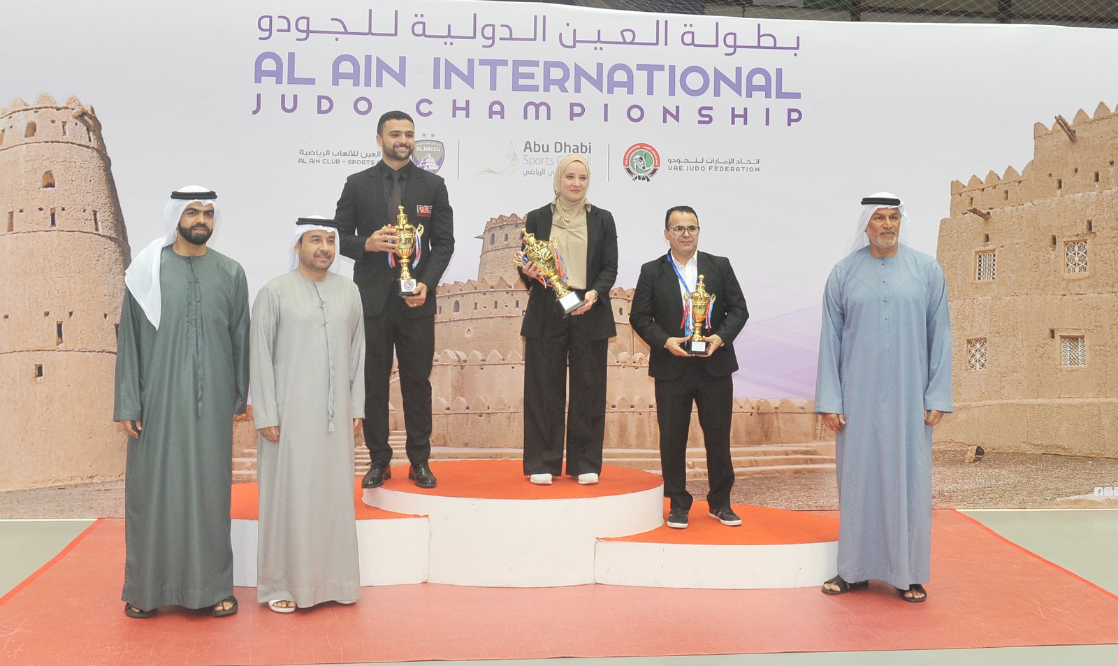 وتوج الفائزين الدكتور ناصر التميمي نائب رئيس اتحاد الجودو، ومحمد جاسم، الأمين العام للاتحاد، وعيسى بن هويدن، عضو مجلس الإدارة، رئيس لجنة أندية ومراكز الجودو المنطقة الشرقية والشمالية.