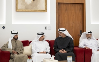 رافق سموه خلال تقديم العزاء، الشيخ خليفة بن طحنون بن محمد آل نهيان، رئيس ديوان ولي عهد أبوظبي، والقائد العام لشرطة أبوظبي، اللواء أحمد سيف بن زيتون المهيري.