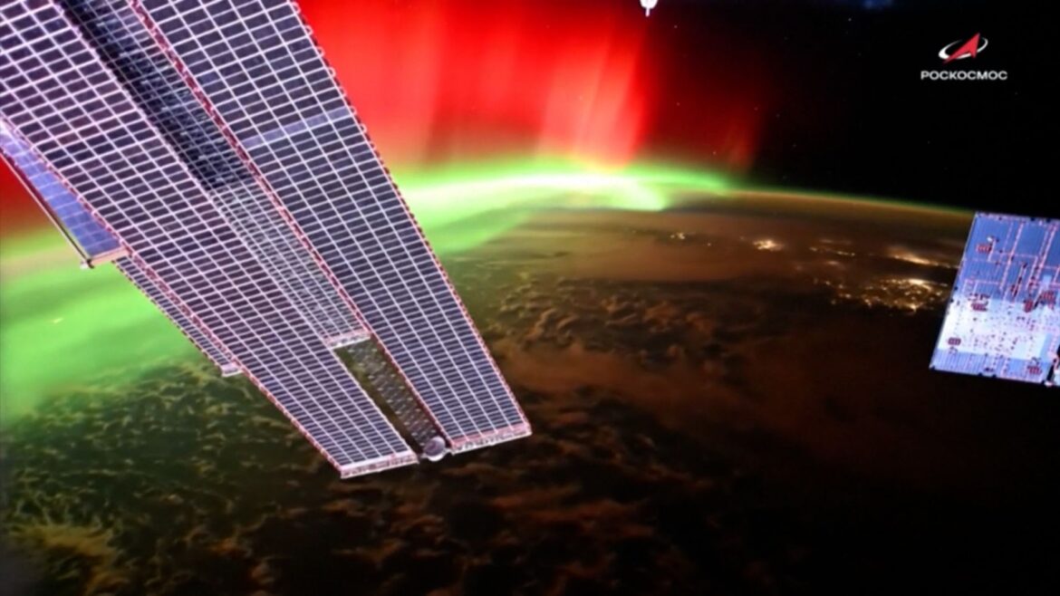 رصد رائد فضاء من وكالة الفضاء الروسية روسكوزموس، كان على متن محطة الفضاء الدولية، مشاهد مذهلة للشفق القطبي المتلألئ فوق كوكب الأرض، خلال أقوى عاصفة شمسية شهدها العالم منذ عشرين عاما.