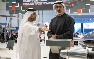 واطلع سموه خلال جولته في أجنحة المعرض على أحدث الابتكارات التي تعرضها الشركات والمؤسسات المشاركة في مجالات الأنظمة غير المأهولة والذكاء الاصطناعي والمحاكاة والتدريب وتقنيات المستقبل في مختلف القطاعات المدنية والتجارية والدفاعية.