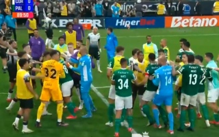 ركض اثنان من المدافعين تجاه لاعب مانشستر يونايتد السابق ولاعب برشلونة ، الذين سقطوا على الأرض ، بالقرب من التماس حيث كان كورنثوس العملية الدافئة ، مما أدى إلى قتال بين الفريقين. توقفت المباراة لعدة دقائق.