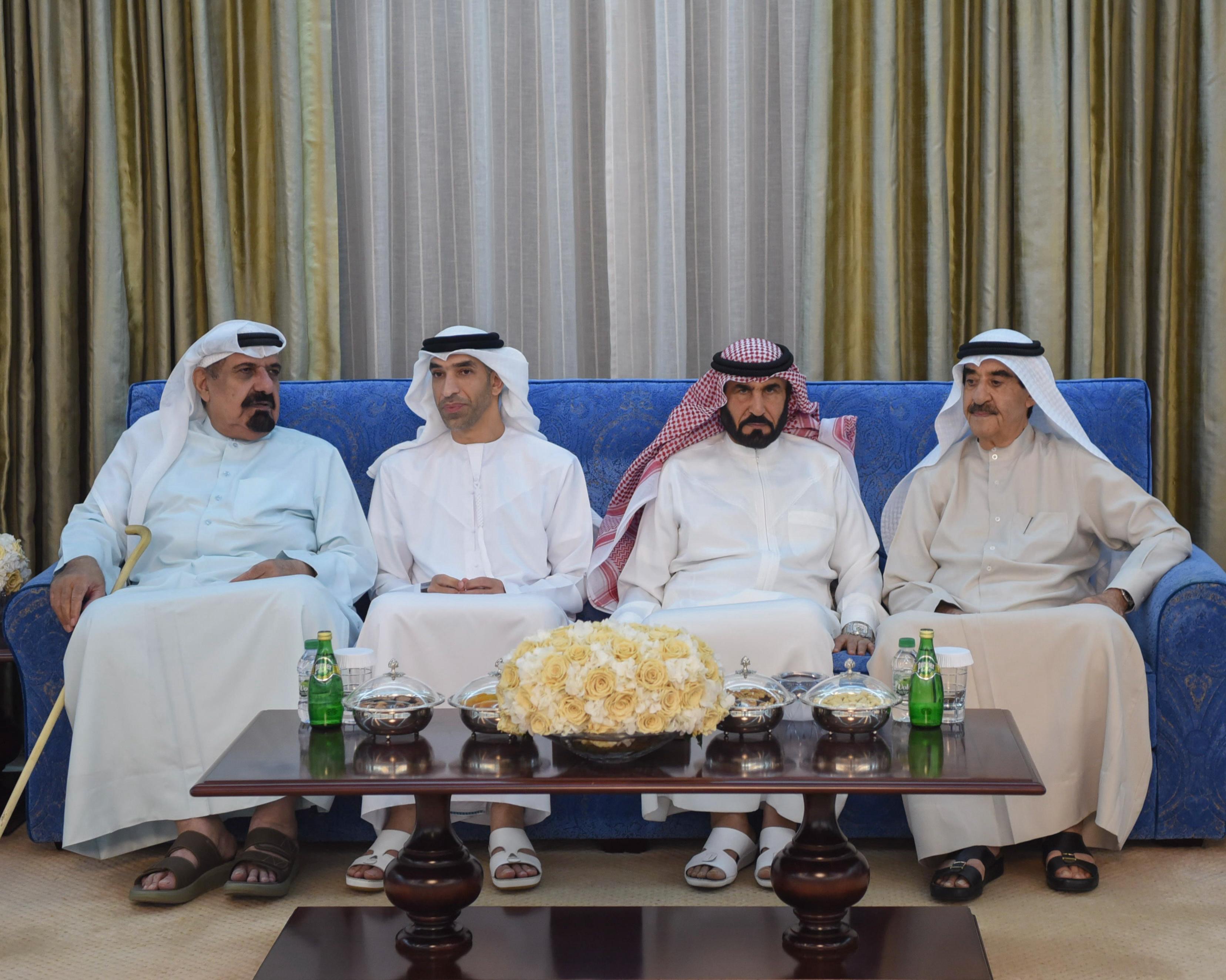 كما تقبل سموه التهاني بالشهر الفضيل من رئيس وأعضاء مجلس إدارة النادي العربي الثقافي الرياضي والجهازين الفني والإداري ولاعبي الفريق الأول لكرة القدم بالنادي، والهيئتين الإدارية والتدريسية بالكلية التطبيقية البريطانية، والمواطنين وأبناء القبائل وأبناء الجاليات العربية والإسلامية والأجنبية ورجال الأعمال ومديري الدوائر المحلية والاتحادية بالدولة الذين أعربوا جميعاً عن خالص تهانيهم، بهذه المناسبة الإسلامية، داعين العلي القدير أن يعيدها على سموه بموفور الصحة والعافية والسعادة وعلى شعب الإمارات بالتقدم والازدهار والرقي وعلى الأمتين العربية والإسلامية باليمن والخير والأمن والسلام.