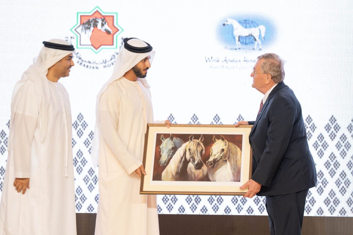 من جانبها كرمت المنظمة العالمية للخيول العربية “الواهو” الشيخ زايد بن حمد آل نهيان، لجهوده الكبيرة في إنجاح أعمال الجمعية العمومية للمنظمة وقام رئيسها بيتر بوند بتسليمه درعا خاصا من المنظمة العالمية.