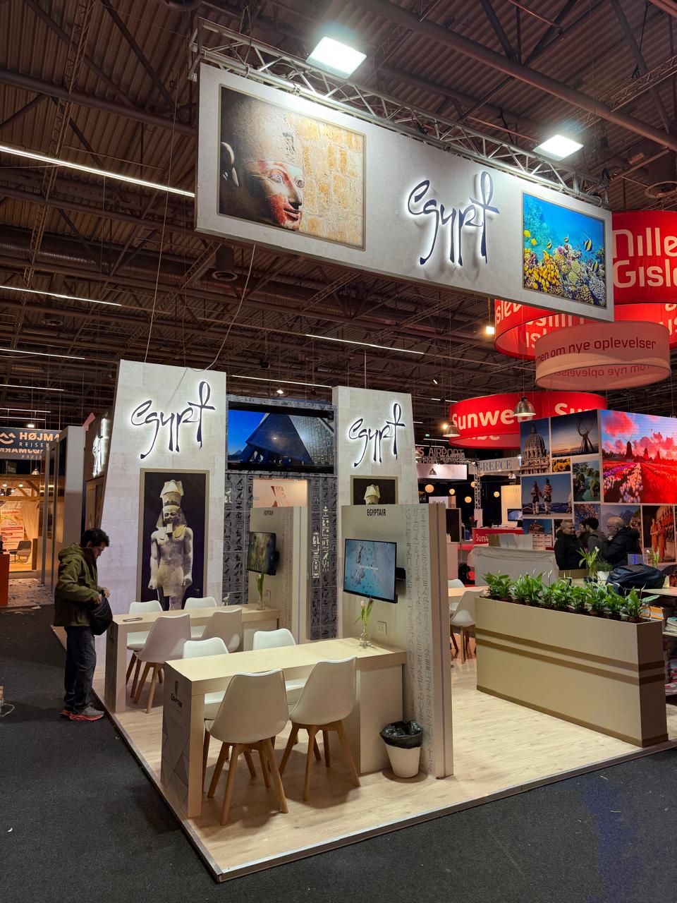 وعلى هامش فعاليات المعرض، تم عقد اجتماعات مع كبرى شركات الطيران ومنظمي الرحلات السياحية في الدنمارك، الذين أشاروا إلى زيادة الطلب على مصر خلال الموسم الحالي، بالإضافة إلى زيادة عدد الرحلات الأسبوعية إلى مصر خلال الموسم المقبل.