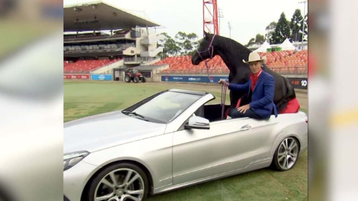 عادةً ما يستخدم الناس مقطورات لنقل خيولهم ، لكن “Vigimite” ليس حصانًا عاديًا … حيث وصل إلى “عرض Royal Sydney” لعيد الفصح ، والذي يعتبر النسخة الأسترالية من المهرجانات الريفية المحلية ، على مرسيدس مكشوفة.