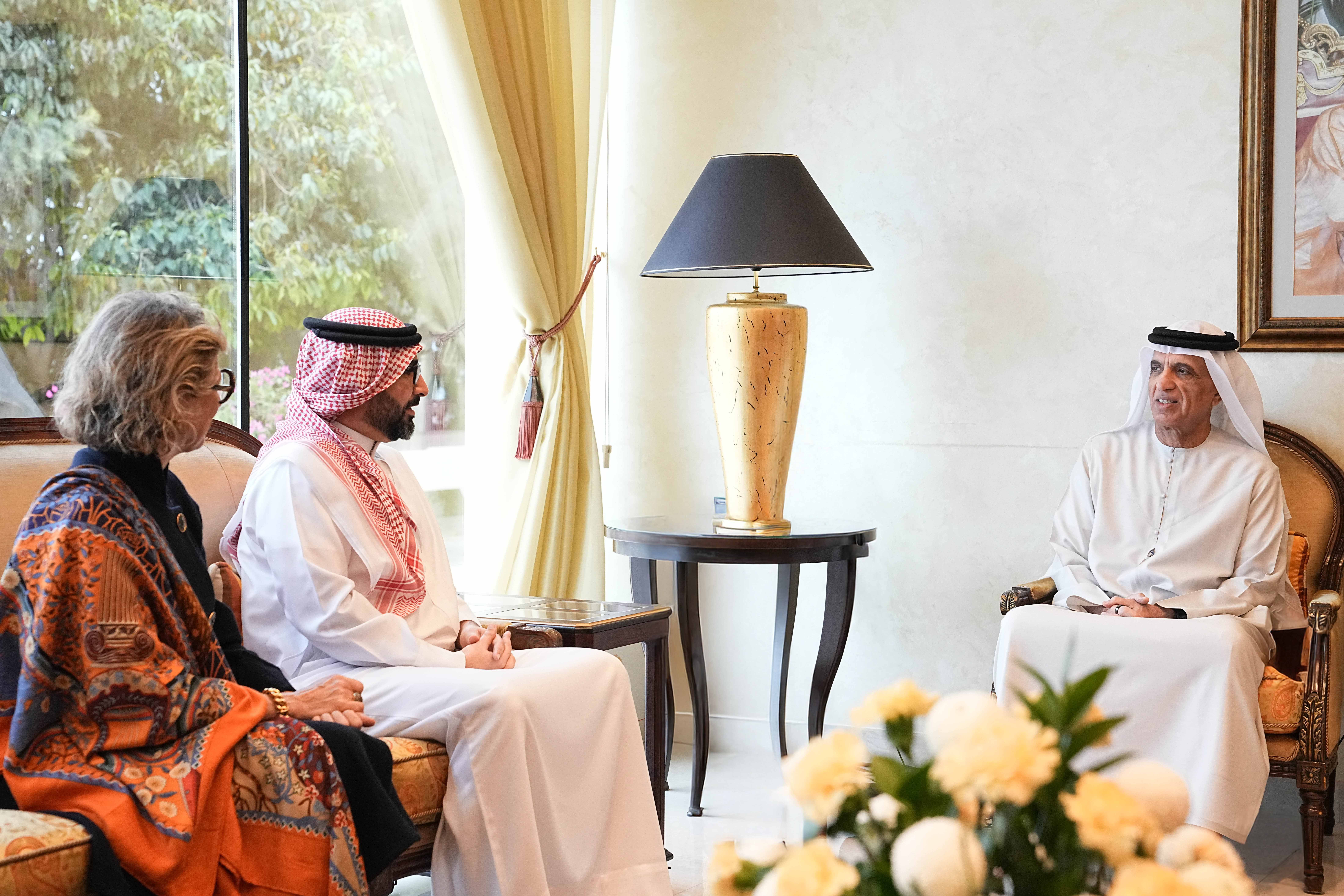 رأس الخيمة في 10 مارس / وام / استقبل صاحب السمو الشيخ سعود بن صقر القاسمي عضو المجلس الأعلى حاكم رأس الخيمة، اليوم في قصر سموه بمدينة صقر بن محمد، سعادة أيمن توفيق المؤيد رئيس مجلس إدارة فنادق “كمبينسكي”، وباربرا موكرمان الرئيس التنفيذي للشركة.