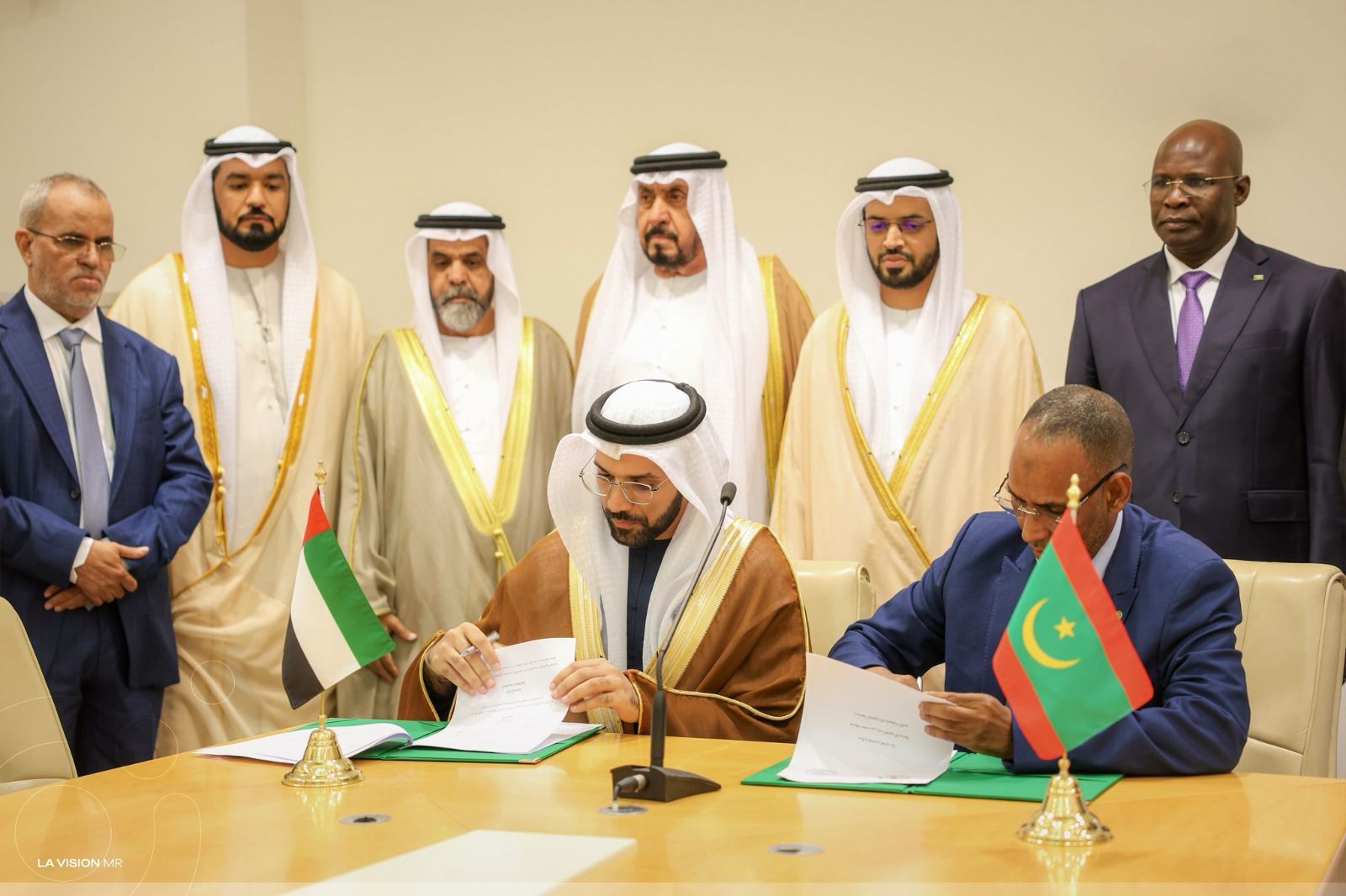 وقّع الاتفاقية، سعادة الدكتور خليفة مبارك الظاهري، مدير جامعة محمد بن زايد للعلوم الإنسانية، والدكتور محمد تقى الله ولد الطالب جدو، رئيس جامعة المحظرة الشنقيطية، بحضور معالي الدكتور عمر حبتور الدرعي، رئيس الهيئة العامة للشؤون الإسلامية والأوقاف والزكاة، ومعالي سيدي يحيى ولد شيخنا ولد لمرابط، وزير الشؤون الإسلامية والتعليم الأصلي في موريتانيا، وسعادة حمد غانم حمد المهيري، سفير الدولة في نواكشوط، وبيت الله ولد أحمد لسود، الأمين العام لوزارة الشؤون الإسلامية في موريتانيا.