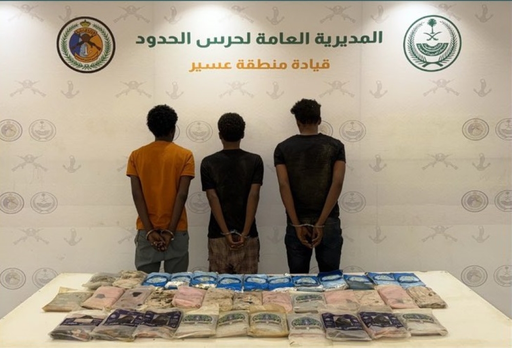 ألقت الدوريات البرية لحرس الحدود في قطاع رابوا في منطقة عسير القبض على 3 منتهكين لنظام أمن الحدود في الجنسية الإثيوبية ، لتهريب 39 كجم من الحشيش.