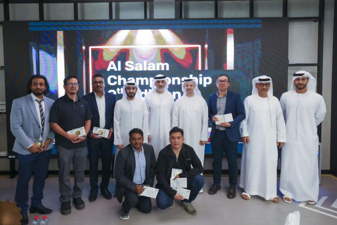 وكرم الفائزين خلال حفل أقيم في نادي ضباط شرطة دبي، أعضاء اللجنة العليا المنظمة للبطولة ماجد البستكي ومحمد الموسى ورامي النابلسي، وجاسم الحمادي ممثل جائزة حمدان بن محمد بن راشد آل مكتوم الدولية للتصوير الضوئي، بحضور أعضاء لجنة التحكيم للمسابقة.