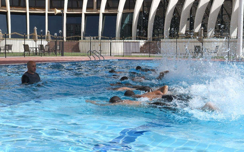 أبو ظبي في 18 مايو/ وام/ نفذت إدارة التأهيل الشرطي بمدينة العين التابعة لأكاديمية سيف بن زايد للعلوم الشرطية والأمنية بشرطة أبوظبي، برنامج السباحة للدفعة 22 من مجندي الخدمة الوطنية، بمسبح نادي ضباط شرطة العين.