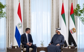 جاء ذلك أثناء استقبال صاحب السمو في قصر الشاطئ في أبو ظبي ، رئيس باراجواي والوفد المصاحب ، الذي يقوم بزيارة رسمية للدولة.
