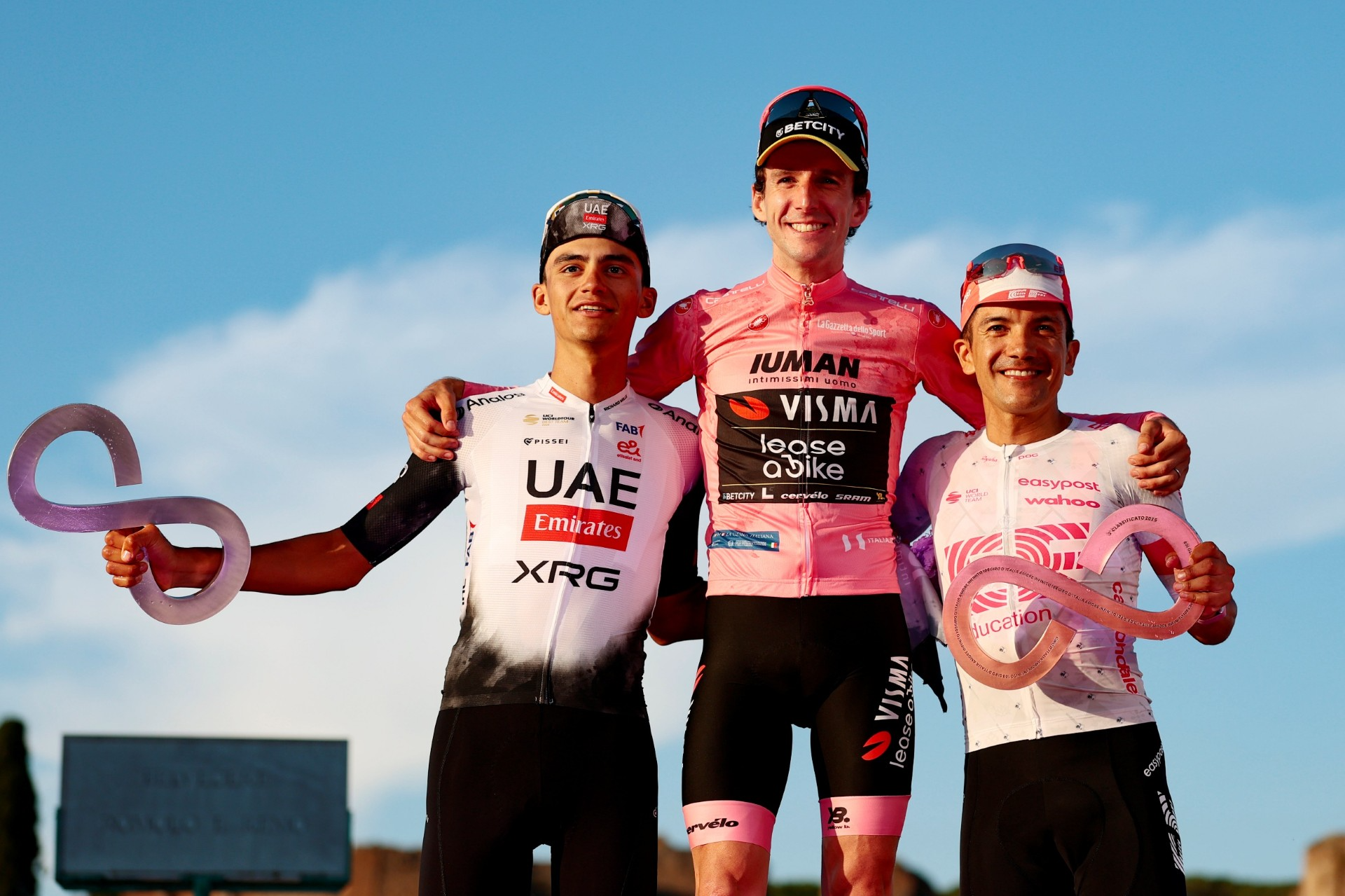 وشهد السباق تألقا لافتا للنجم البالغ من العمر 21 عاما، إلى جانب زملائه في فريق الإمارات – أكس آر جي، الذين صعدوا جميعا إلى منصة التتويج في روما احتفالًا بفوزهم بالوصافة في التصنيف العام للفرق.