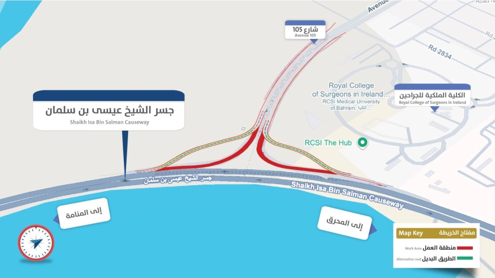 تعلن وزارة الأشغال ، بالتنسيق مع الإدارة العامة لحركة المرور في وزارة الداخلية ، أن الأعمال التحضيرية لإنشاء الجسر العلوي الذي يربط جسر الشيخ عيس بن سلمان والشارع 105 في منطقة البوزيتا …