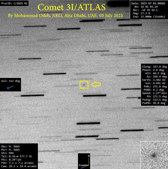 تمكن مرصد الختم الفلكي في صحراء أبو ظبي ، مساء الخميس ، من إطلاق النار على مذنب قادم من مجموعة شمسية أخرى …
